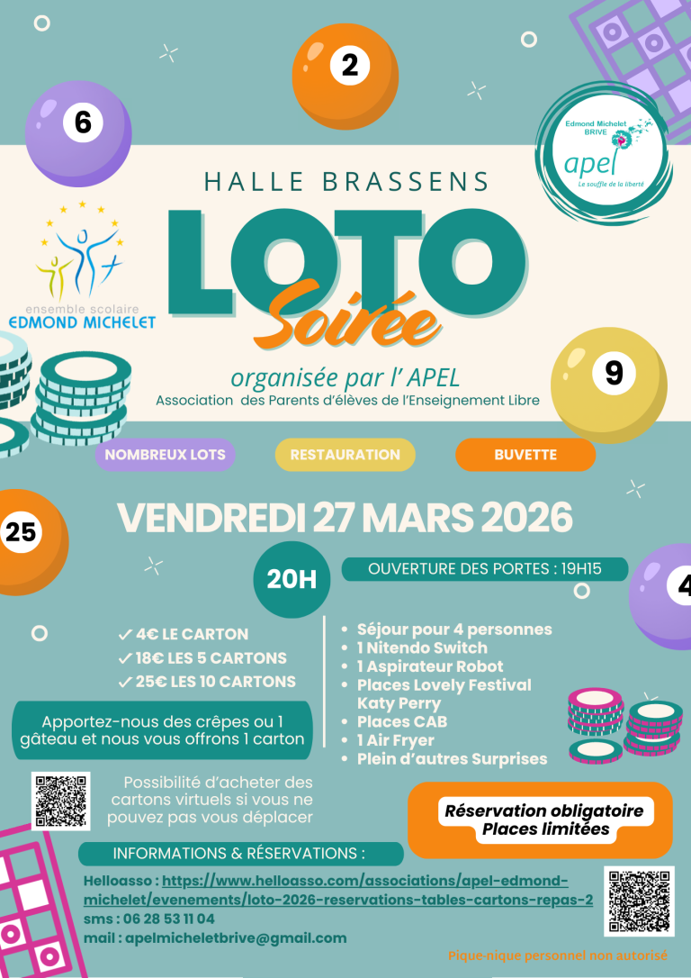 Nous vous attendons nombreuses et nombreux pour notre grand loto du 27 mars sous la Halle Brassens à 20h !